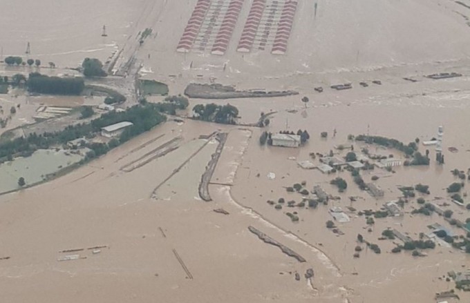 수르다르요 지역 사르도바(Sardoba) 저수지 댐 붕괴로 카자흐스탄 투르케스탄(Turkestan)도 지역도 동시에 홍수 피해를 입었습니다.
