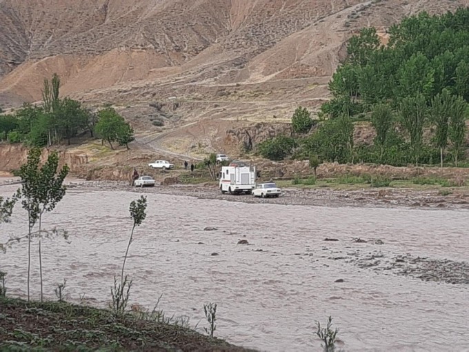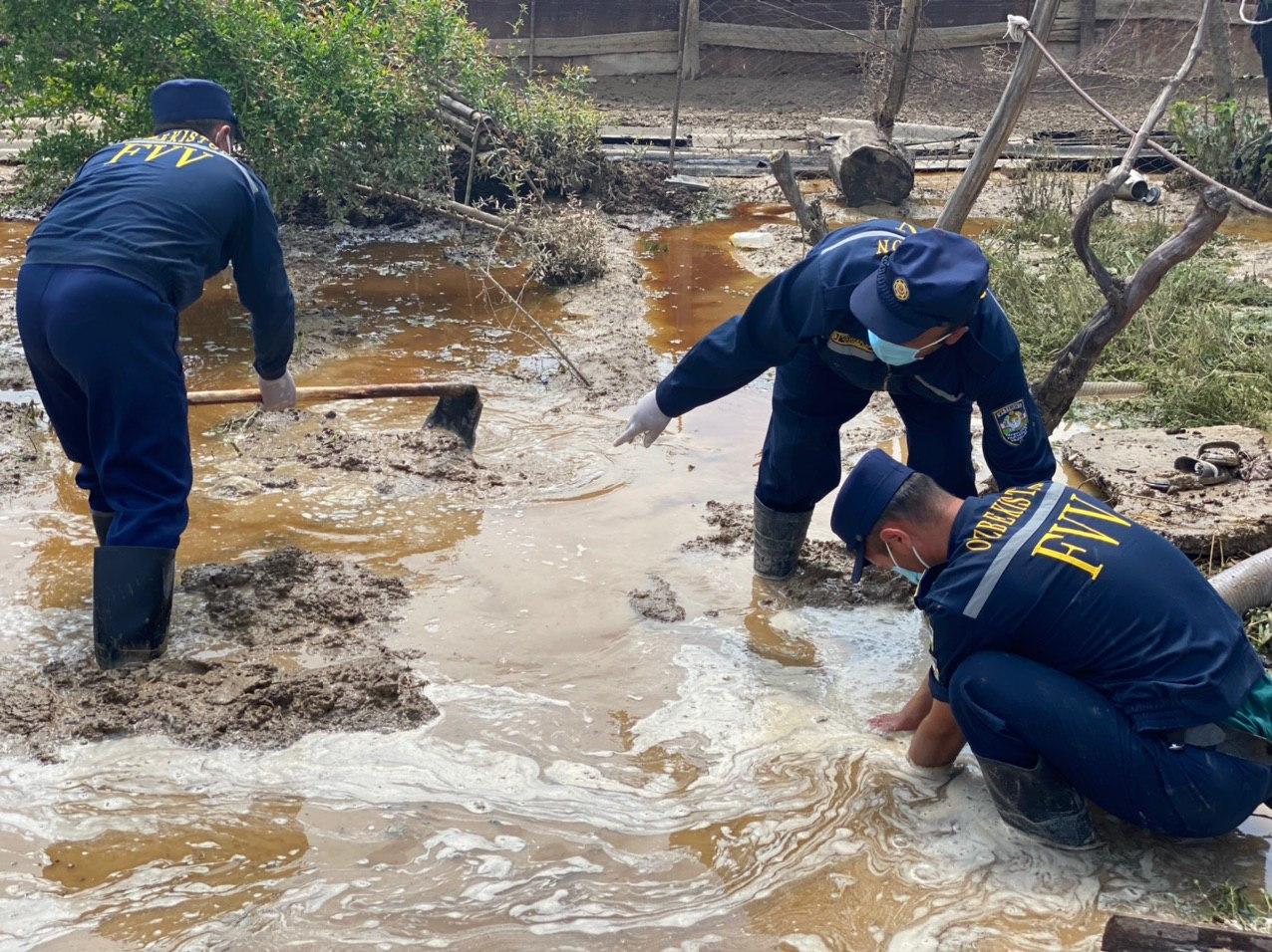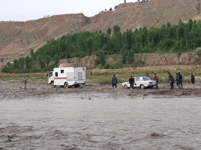 나망간 토라코르곤 지역에서 발생한 홍수에서 차량 2대가 급류에 휩쓸려 떠내려 갔습니다.