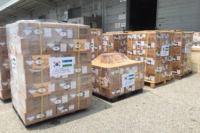 지난 6월 1일 한국의 추가 구호물품이 타슈켄트 공항에 우즈벡항공 전세기편으로 도착했다.