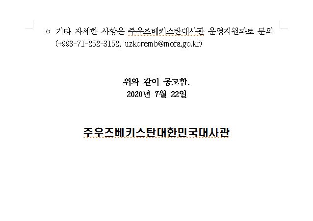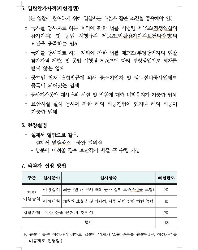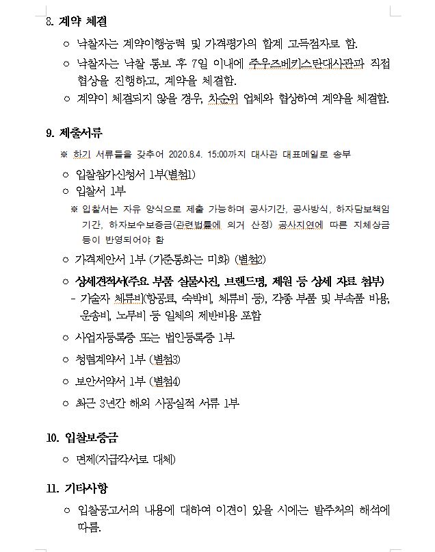 주 우즈베키스탄 대한민국 대사관 보안시설 설치공사 입찰 공고