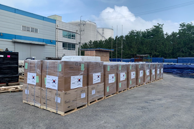 이 마스크는 대한항공 화물기를 통해 7월 22일 타슈켄트에 도착하였으며 보건부에 의해 위생 및 역학 복지국에 전달되었다.