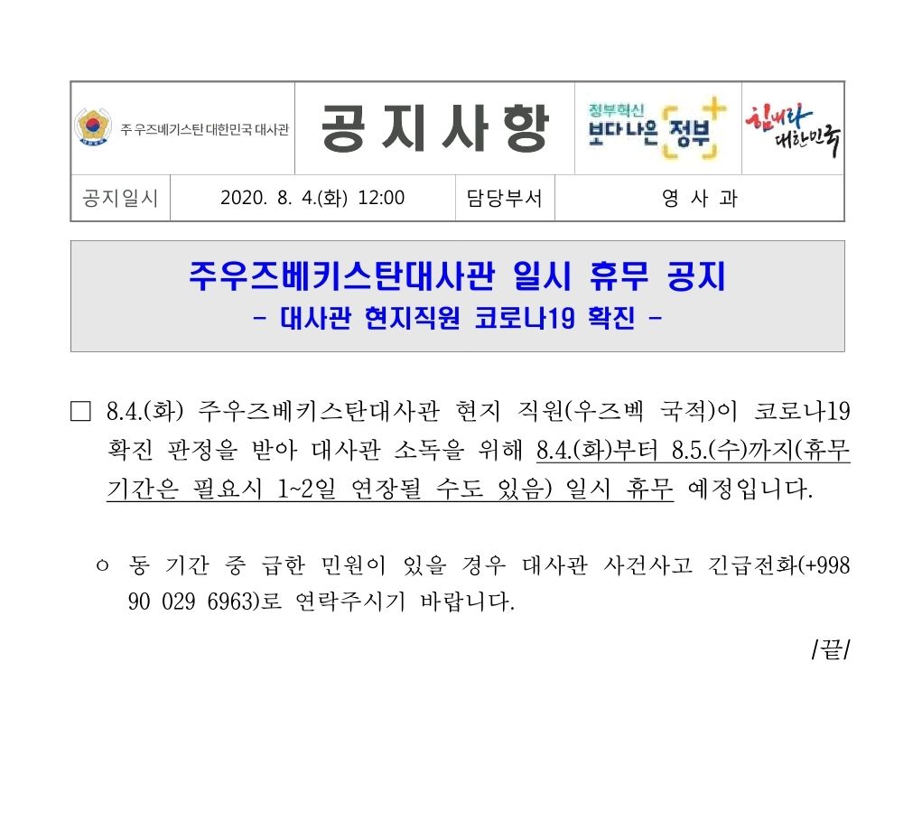 | 우즈벡정부 코로나19 관련 추가 제한조치 발표 (0) | 2020.07.18 |