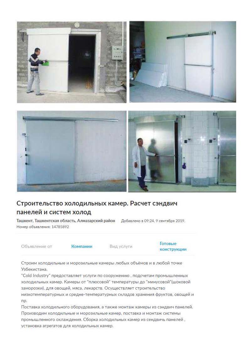 가. 현재 우즈벡에 광고중인 냉동설비 회사가 4개 있음