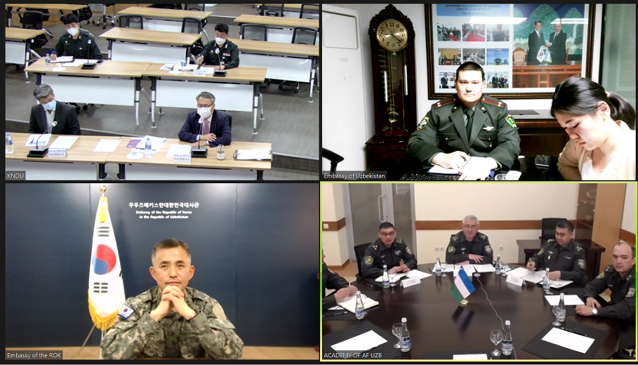 4월 21일, 서울에 있는 주한 우즈베키스탄 대사관의 지원으로 우즈베키스탄 국군 아카데미와 한국 국방 대학교(KNDU) 관계자들간의 화상 회의가 열렸다.