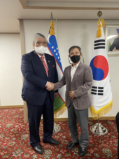 주한 우즈베키스탄 대사인 '비탈리 펜' 대사는 명성프라곤의 정영훈 대표와 만남을 가졌다.