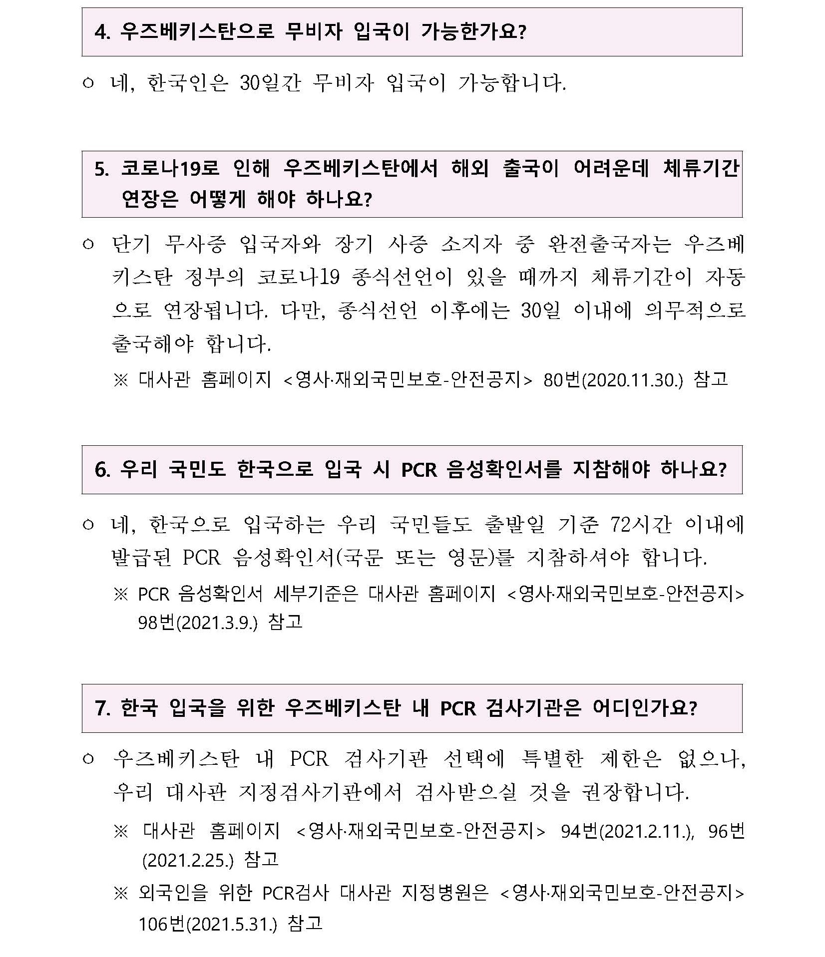 코로나19 관련 우즈베키스탄 입·출국 등 Q&A _ 8월2일 기준 (0) | 2021.08.21 |