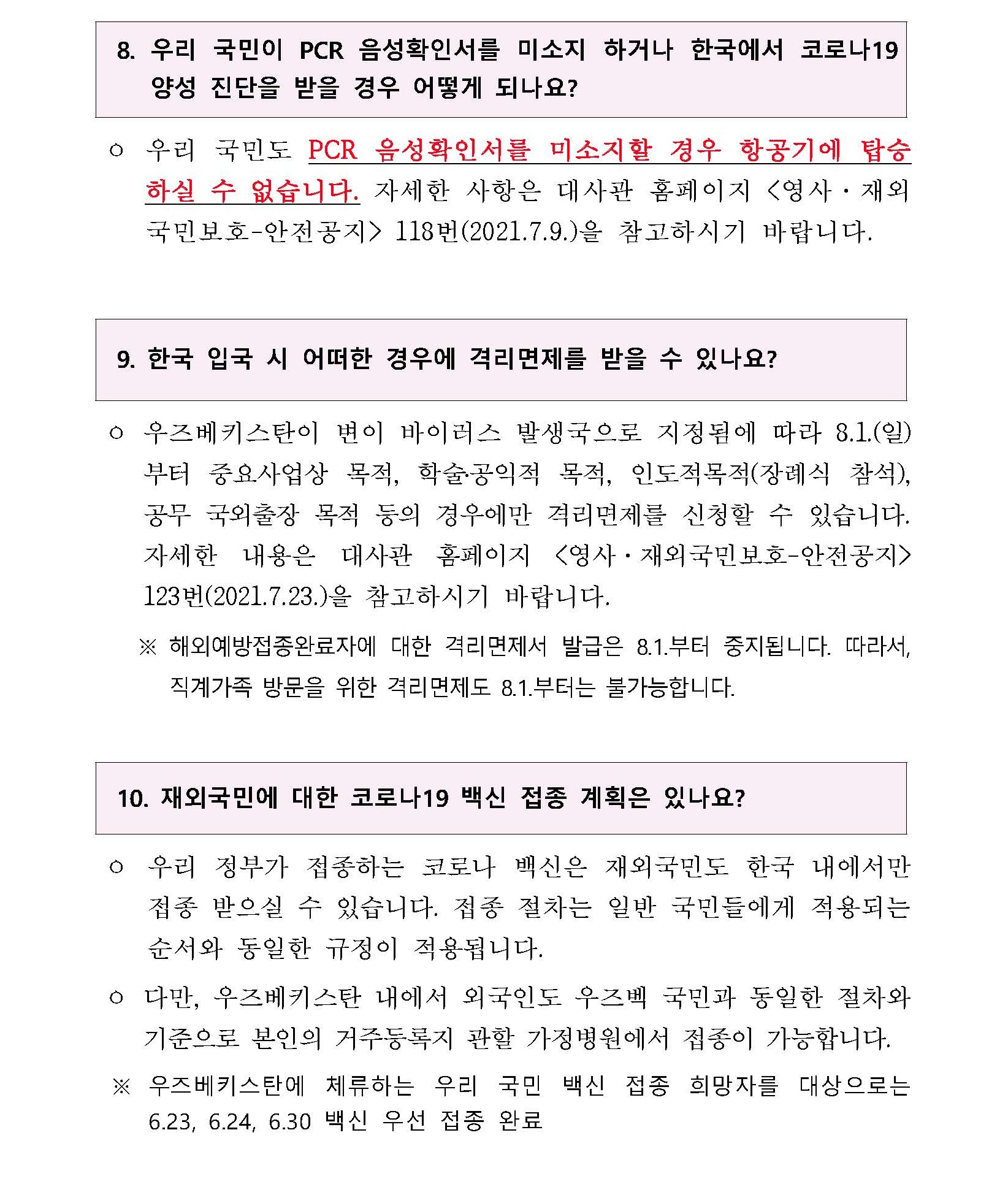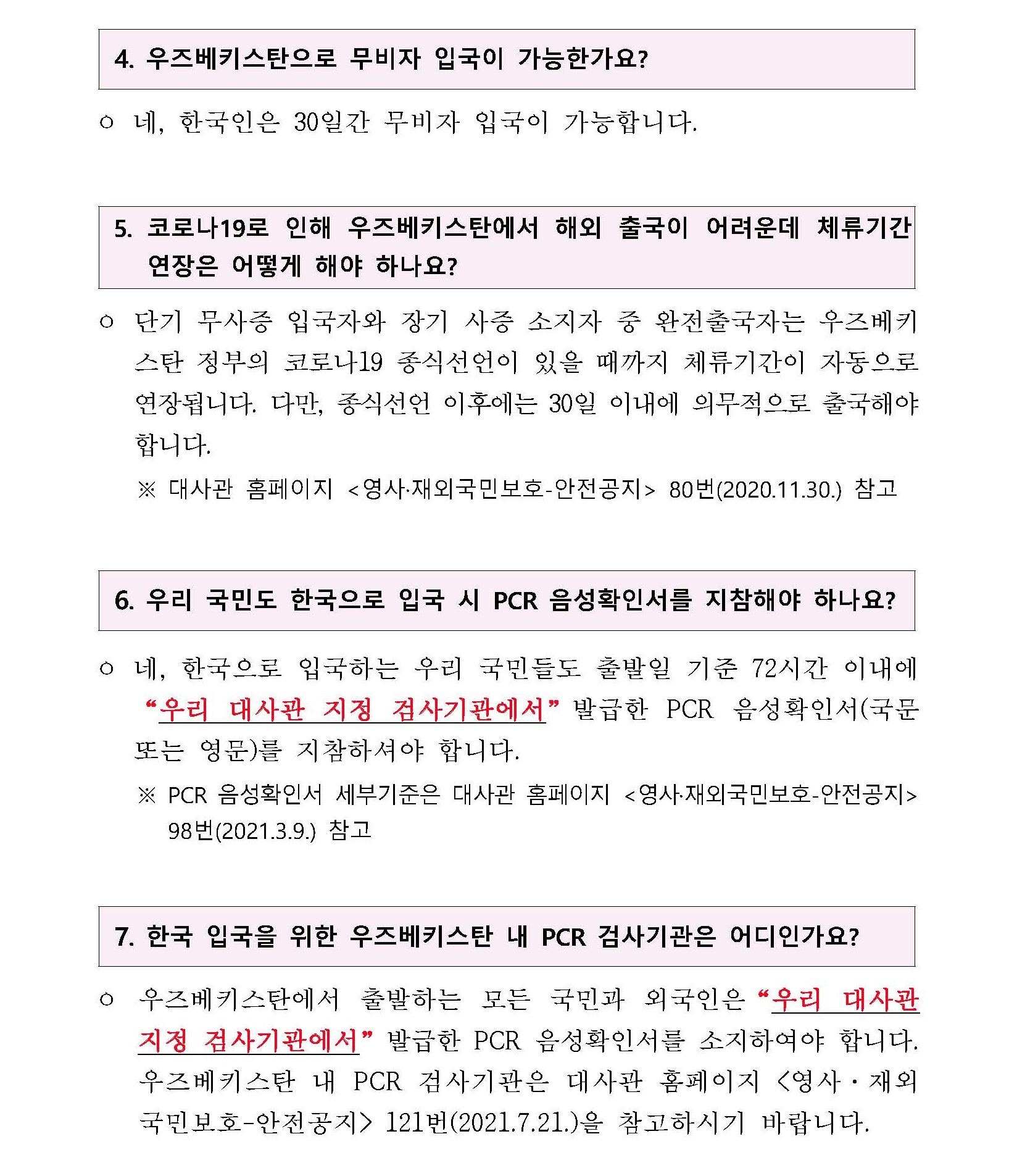 | 코로나19 관련 우즈베키스탄 입출국 Q&A (0) | 2021.07.25 |