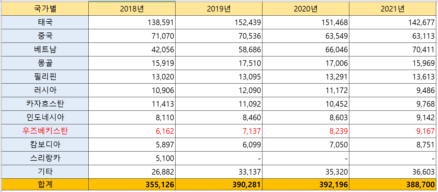 | 우즈베키스탄 인구 (2022년 1월 1일) (2) | 2022.09.05 |