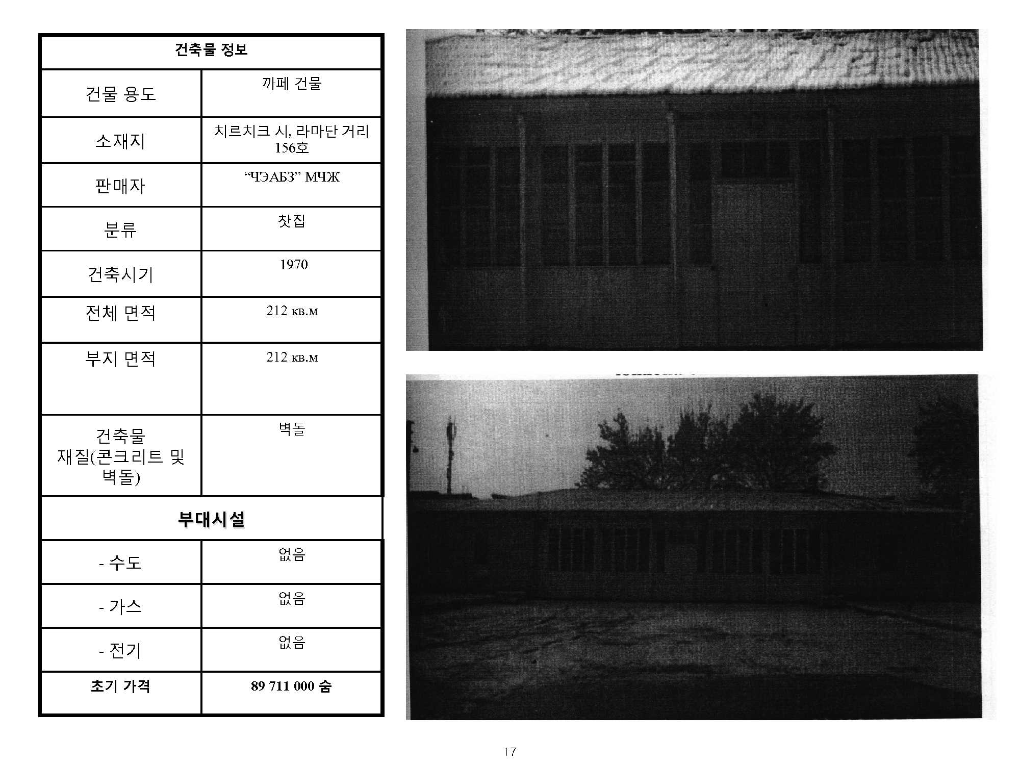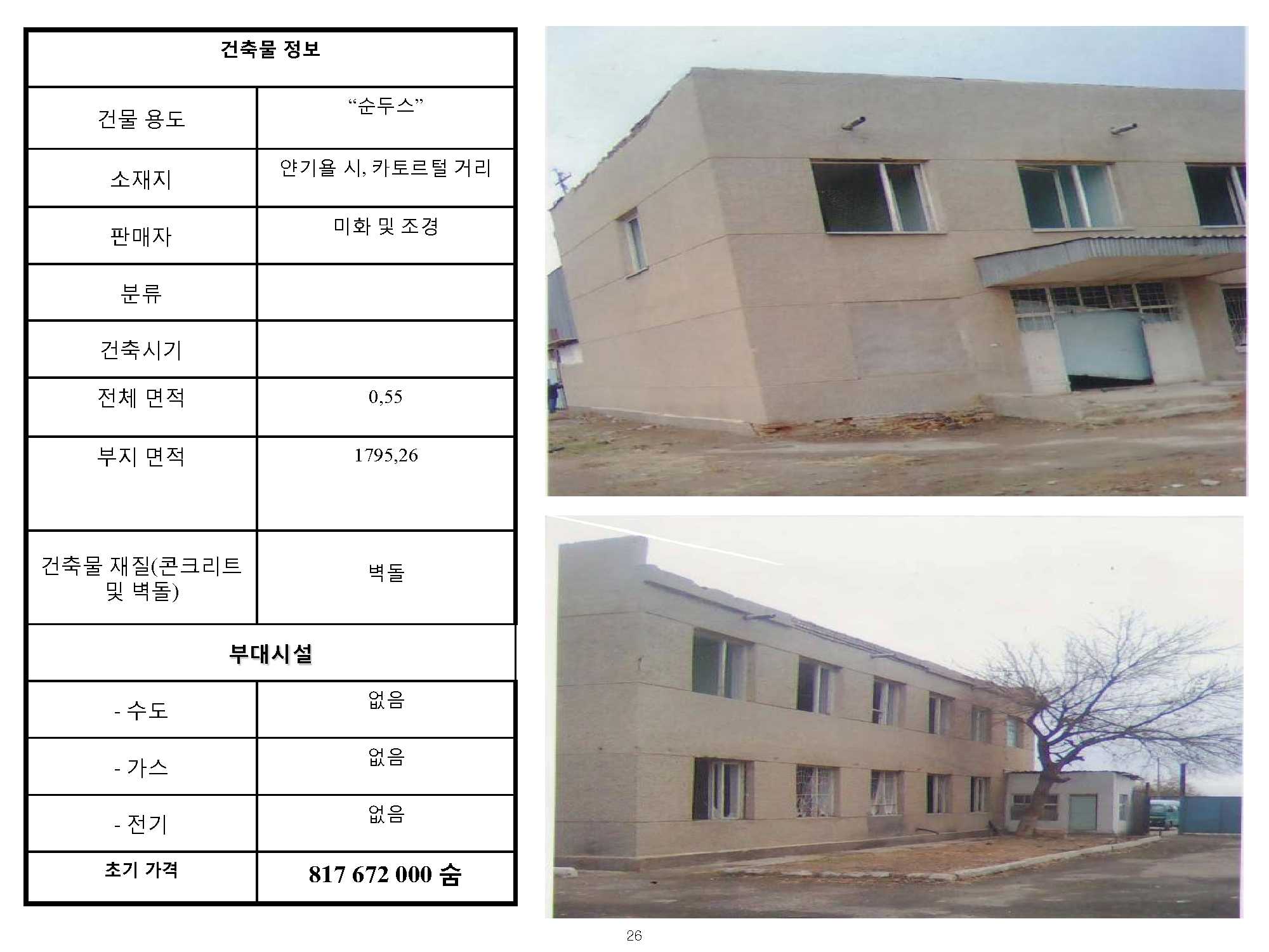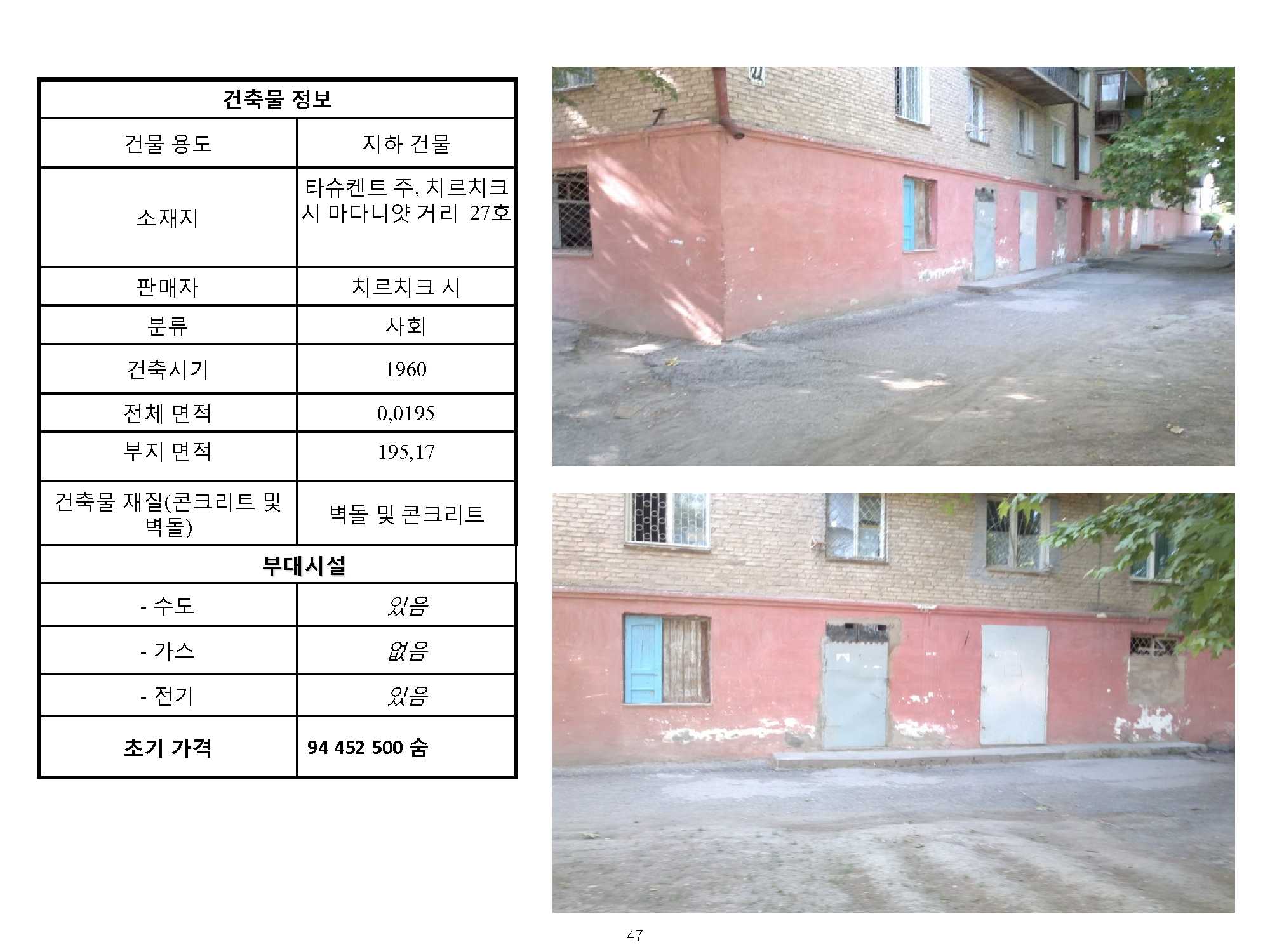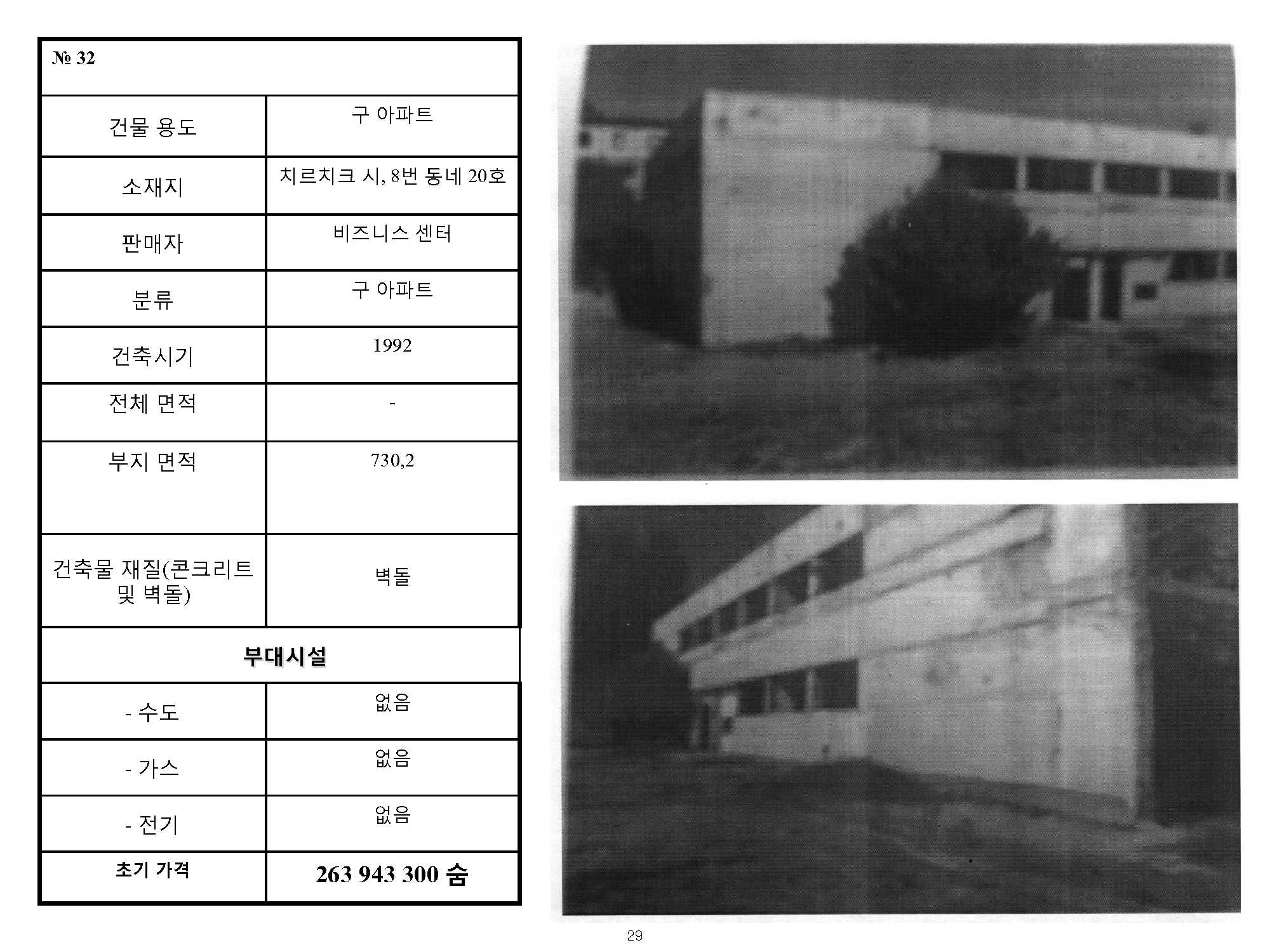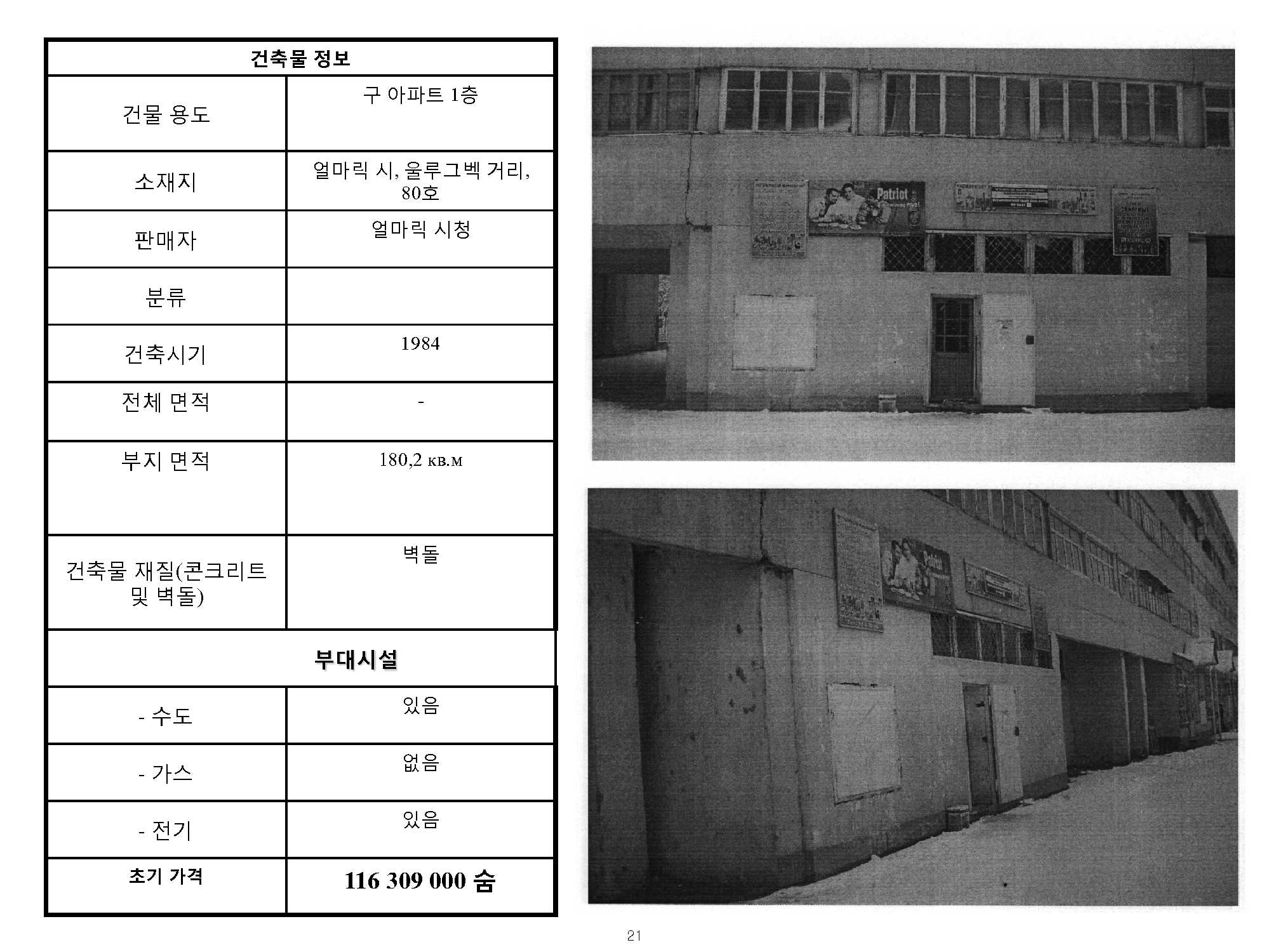 | 우즈베키스탄 정부 부동산 경매 자료 (타슈켄트 지역) (0) | 2019.04.05 |
