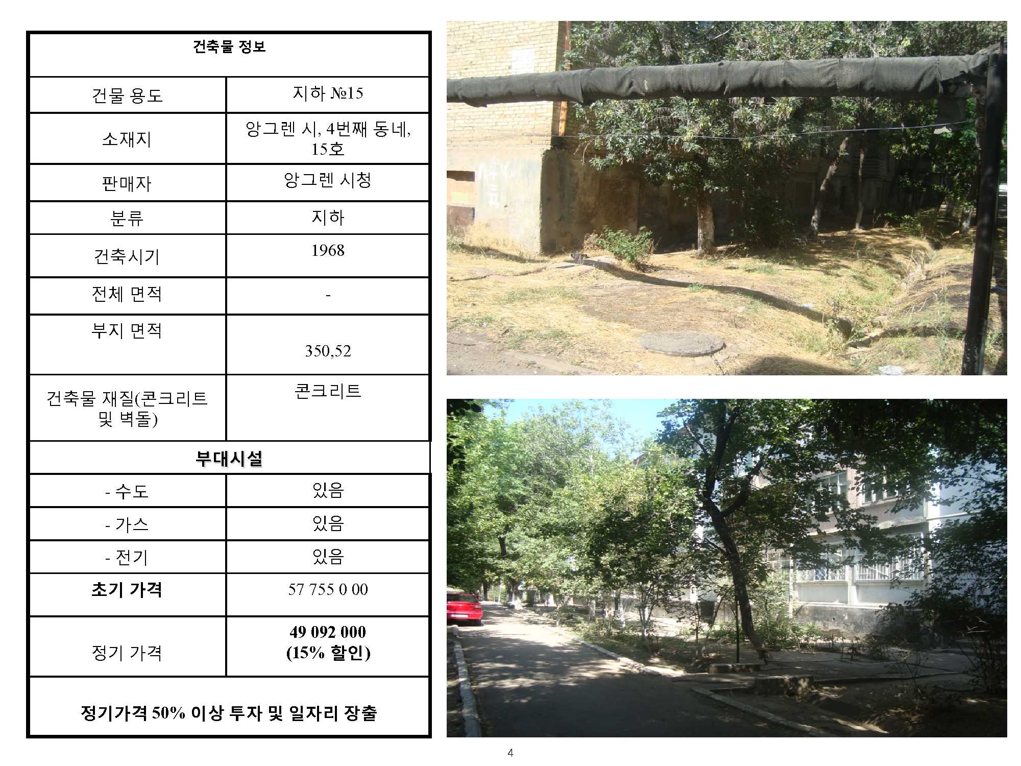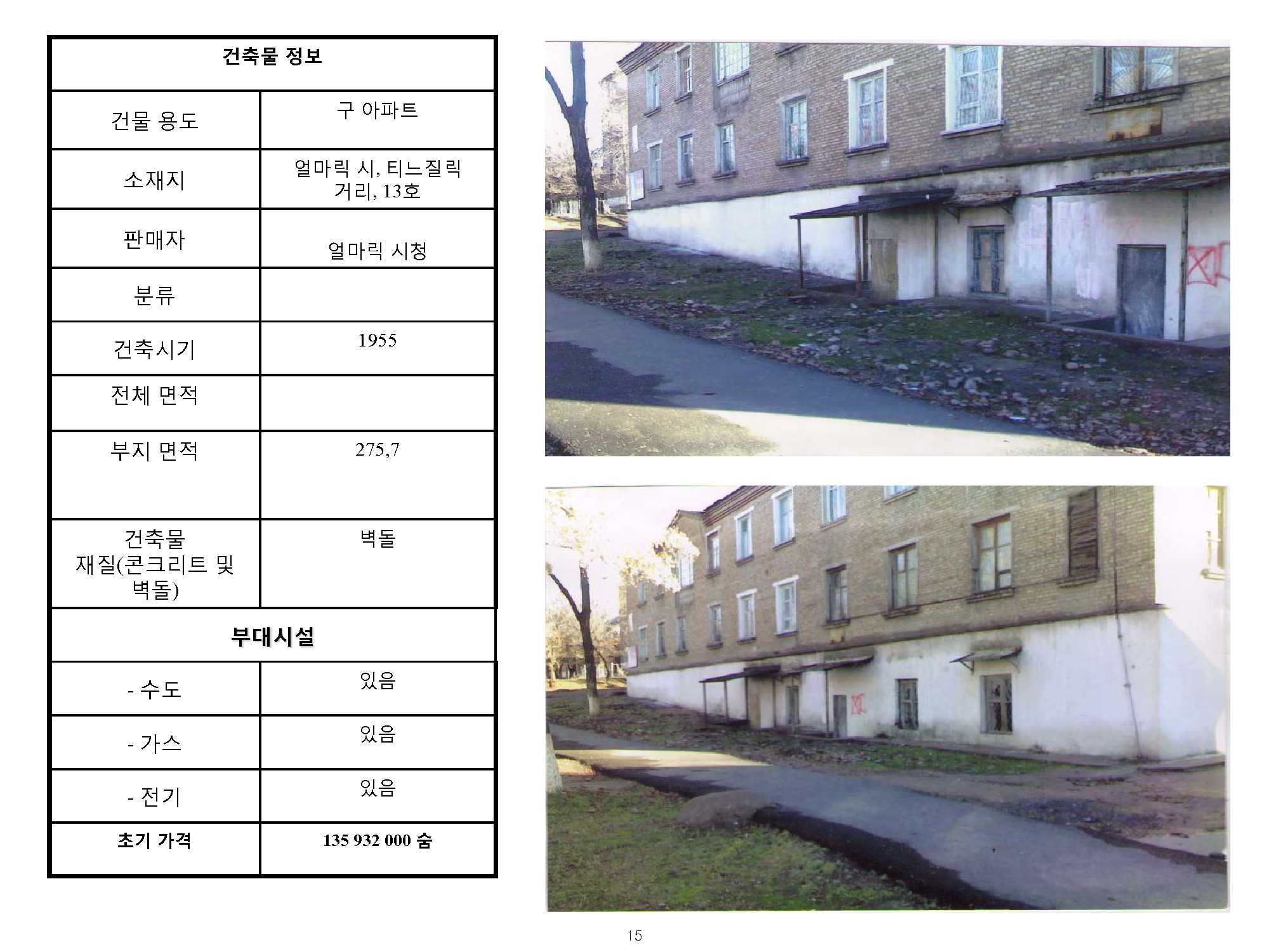 2015년도 타슈켄트 지역 정부 자산(부동산)의 공식 경매 및 판매자료들입니다.