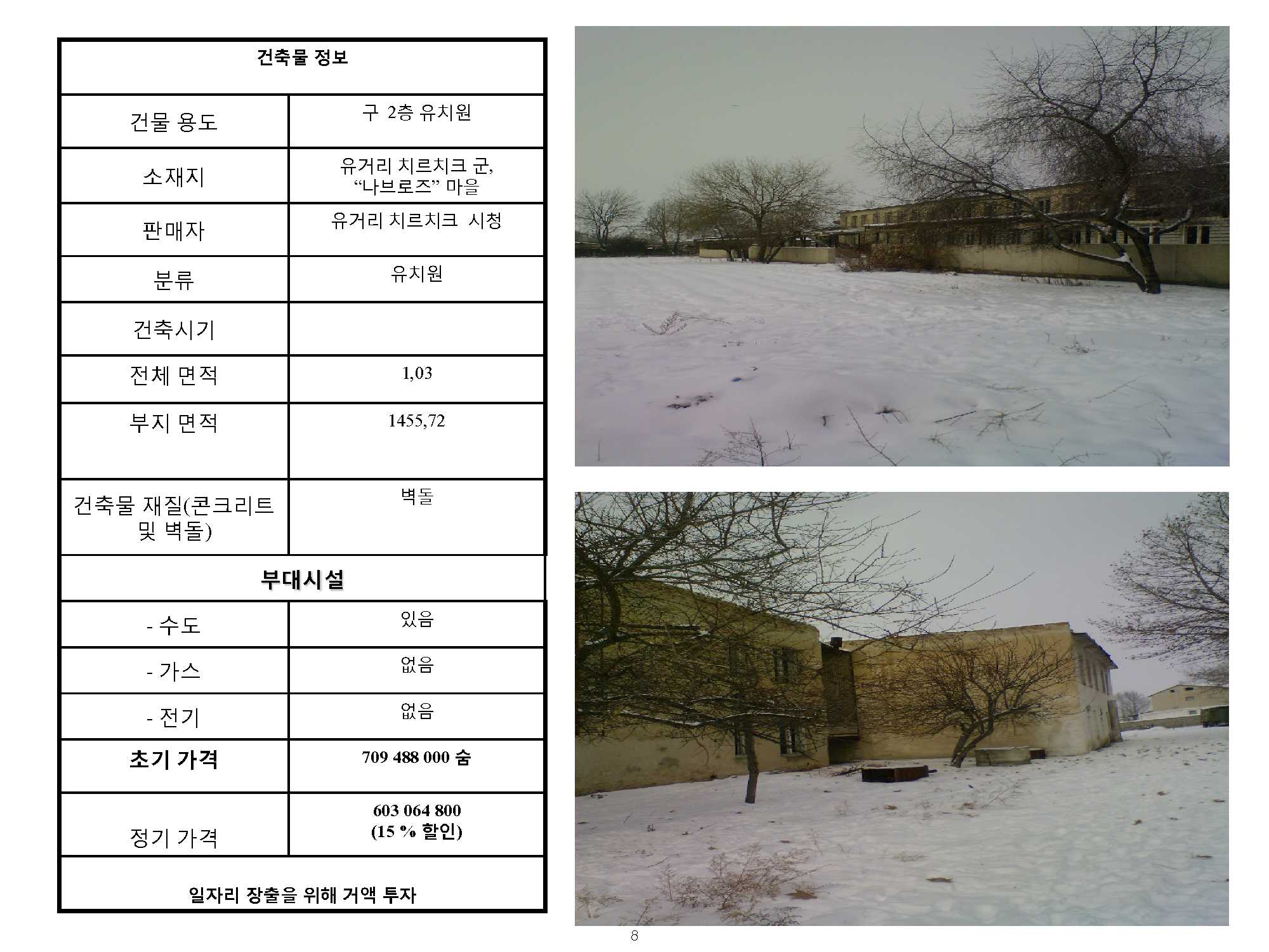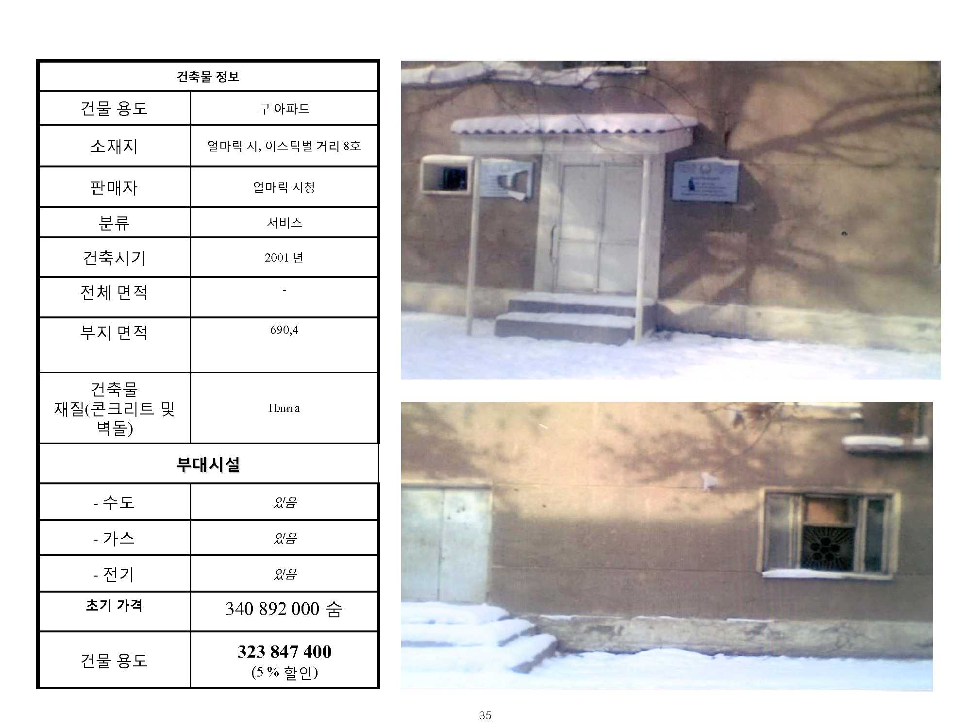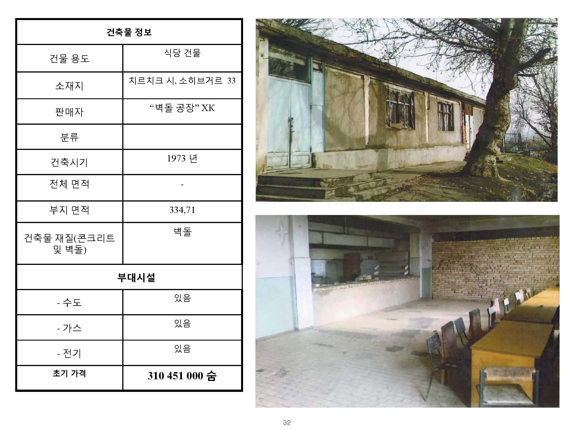 현재 우즈벡 정부 자산 판매는 인터넷을 통해 쉽게 검색되므로 자료의 가치가 무의미한 상황이 되어 공개합니다.