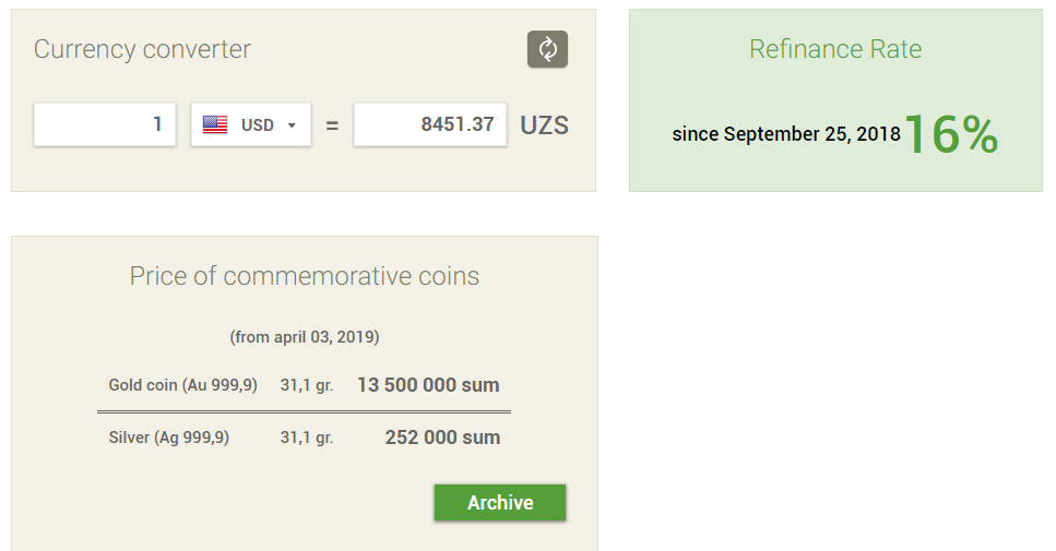 Ўзбекистон Республикаси Марказий банки — Валюталар курслари архиви